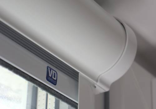 Стандартные. Установлен вал большего диаметра, а также более мощная фурнитура, чем у предыдущих моделей. Оконный проем закрывается полностью, полотно можно использовать как экран для проекторов в офисах или учебных заведениях.